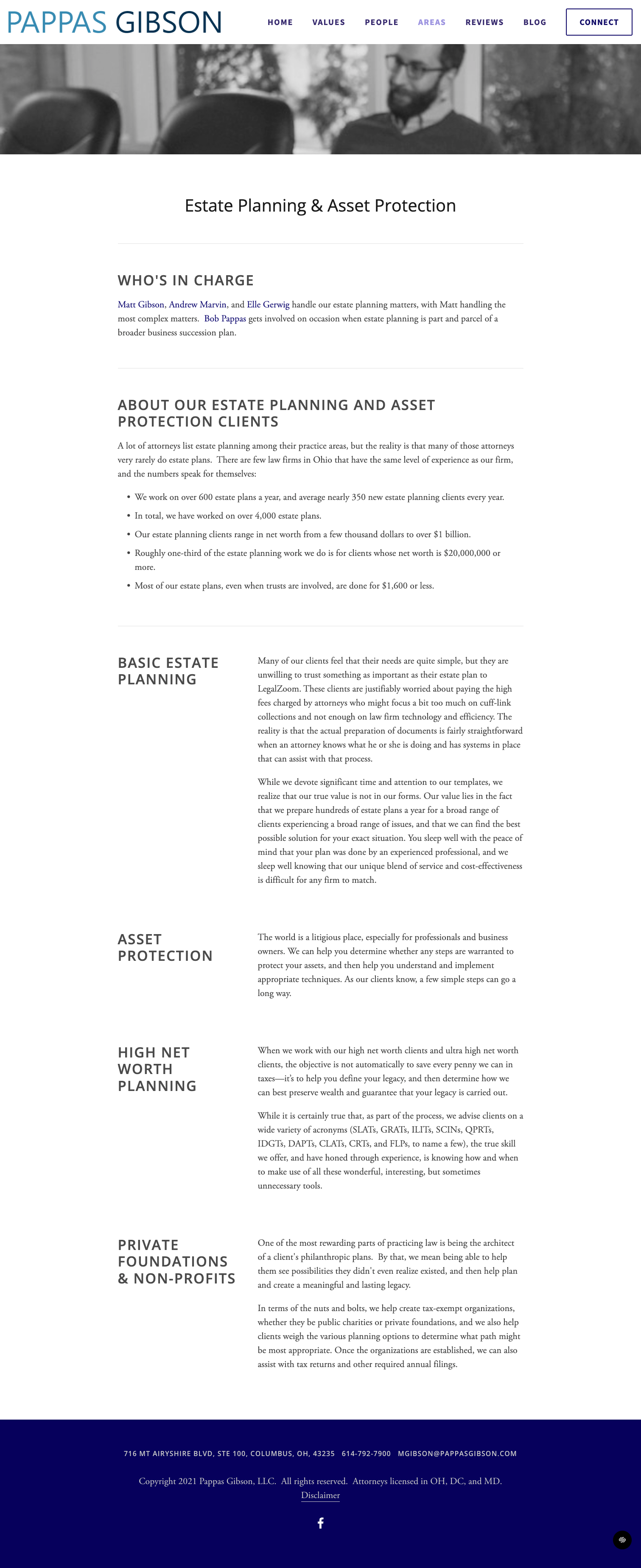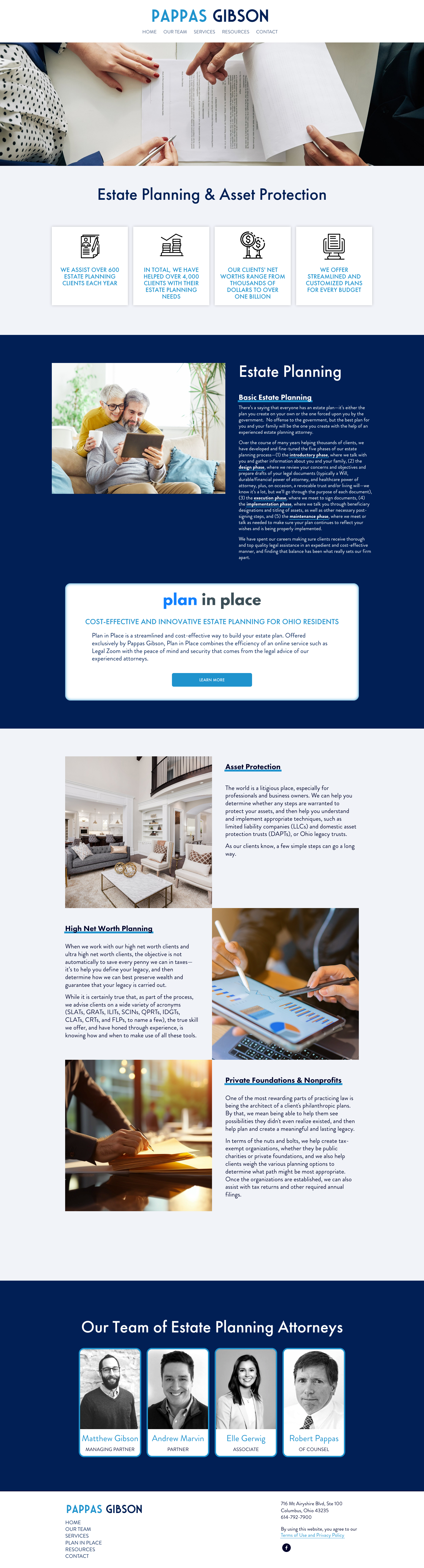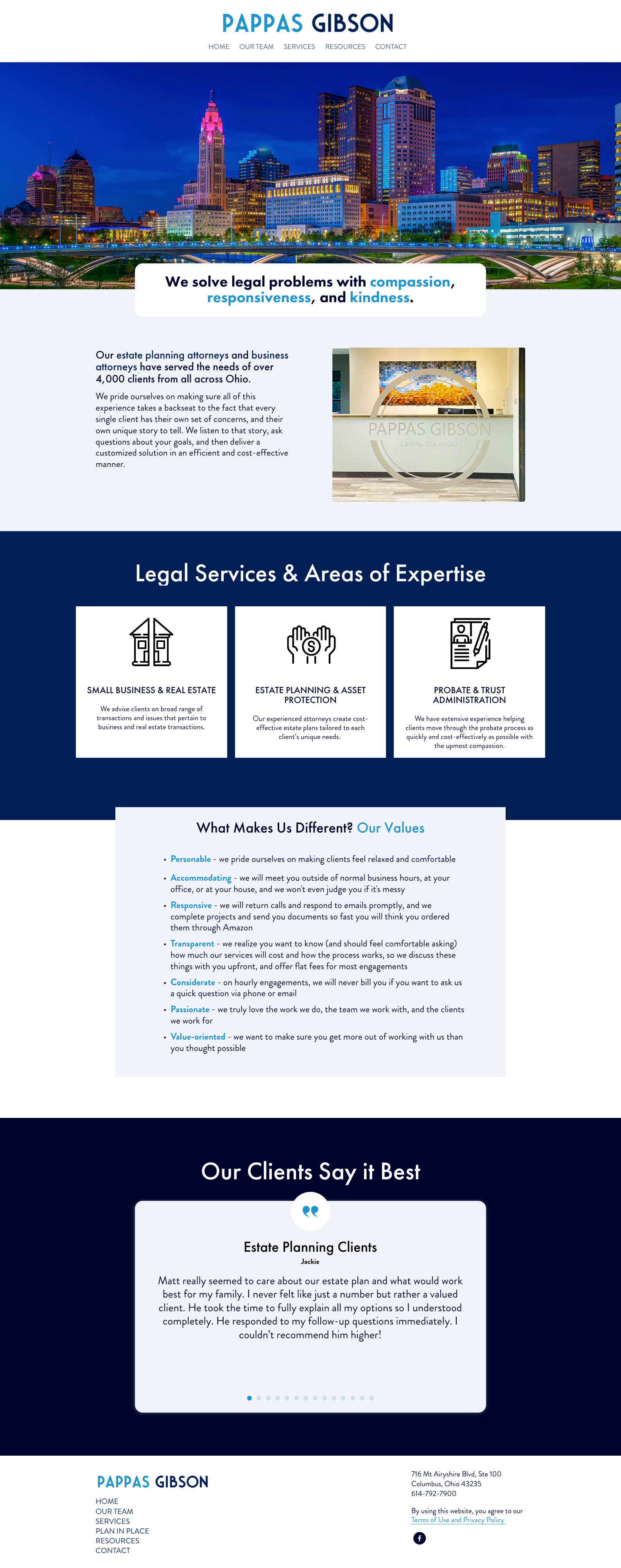 A Columbus, Ohio law firm sought to migrate its website from Squarespace 7 to 7.1 while also redesigning it for a fresh new look and to match its sister website, Plan in Place. An SEO Review and Strategy was also implemented to help improve statewide rankings.