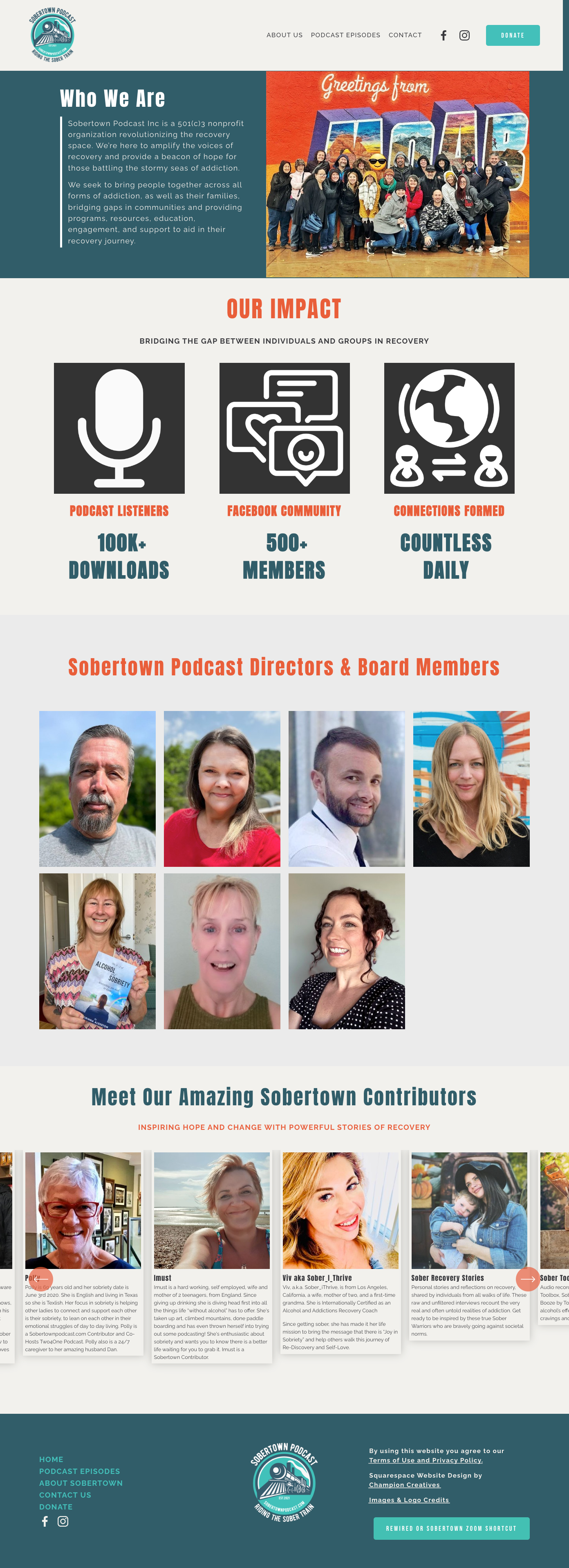 The founder of Sobertown first sought a website to host his sobriety podcast, which has since grown into a dynamic recovery platform and nonprofit organization for those struggling with substance use and addiction. Optimized for growth since its initial launch, Sobertown has amassed over 16,000 organic monthly site visitors and over 105,000 podcast downloads. Serving as the webmaster for this platform since 2021, many unique integrations and functionality have been added throughout, and the site has been redesigned to align with nonprofit objectives and transparency.
