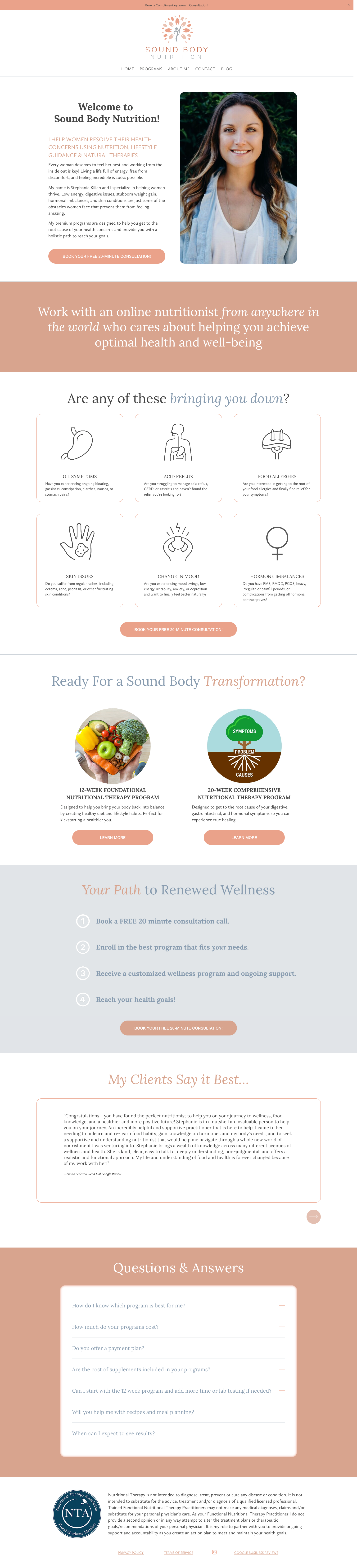 A California-based nutritionist wanted to elevate her design, migrate from Squarespace 7 to 7.1, boost her local presence in search results, and explore ways to capture a wider audience through SEO.